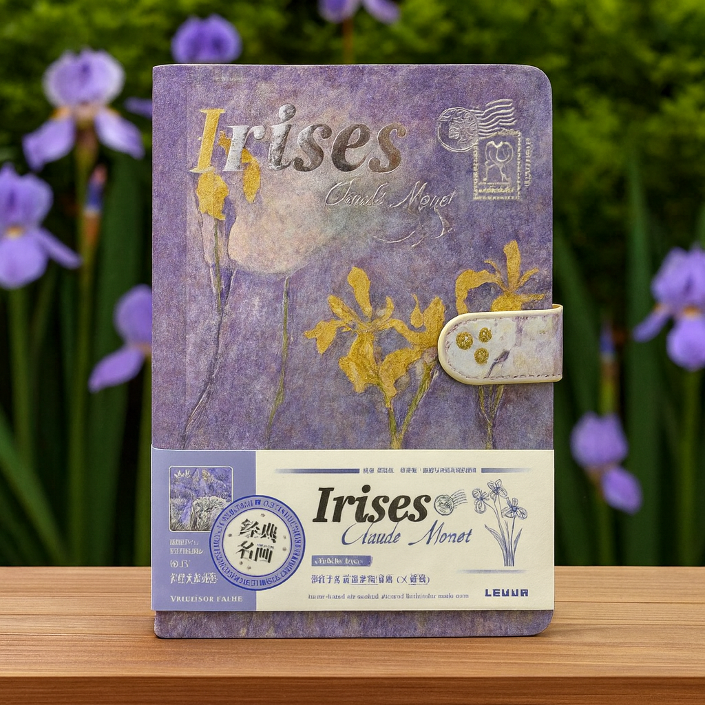 Inspirada en la icónica obra Irises de Claude Monet, esta agenda combina arte, elegancia y serenidad. Su diseño en tonos lavanda y dorado transmite calma y belleza, ideal para quienes disfrutan escribir rodeados de inspiración artística.