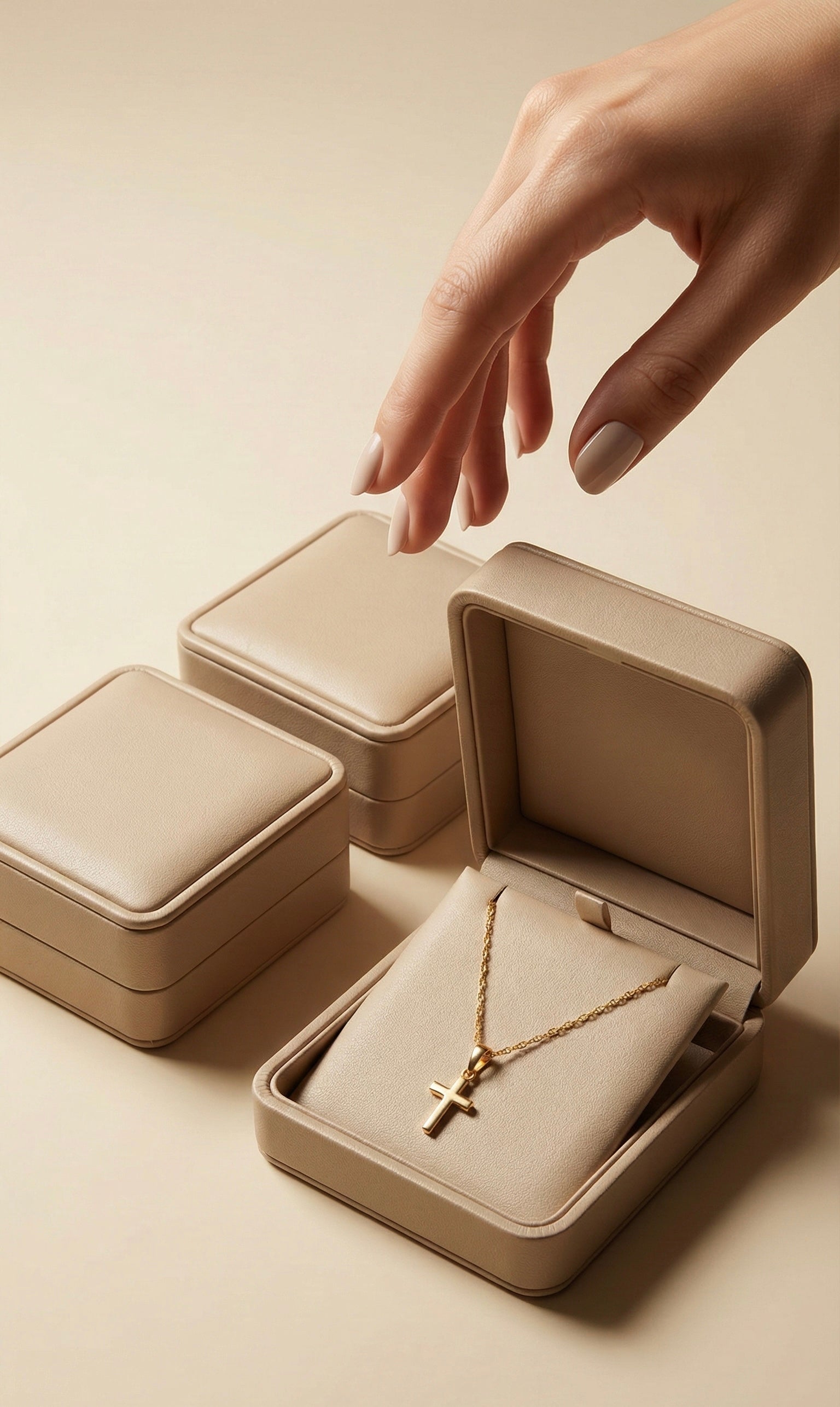 El collar Crux Aurea está elaborado en oro laminado de alta calidad, una pieza de líneas puras y acabado pulido espejo que refleja luz con una elegancia serena. Su cruz minimalista transmite fe y significado espiritual desde una estética contemporánea y refinada, ideal para quienes buscan un símbolo sagrado reinterpretado con lujo discreto.