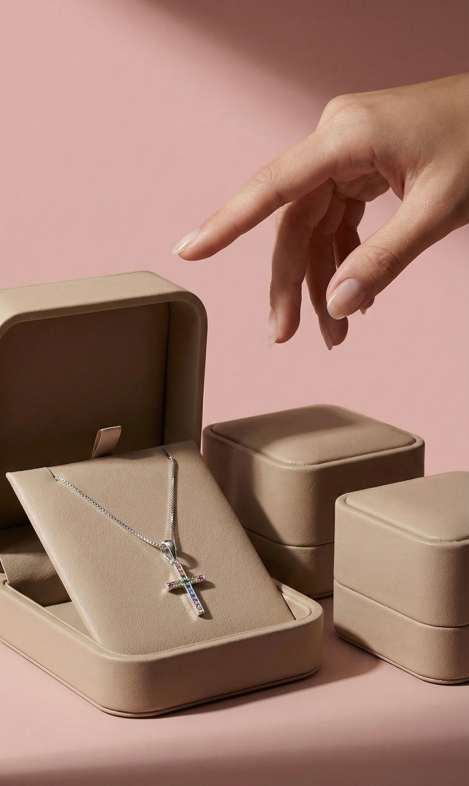 Un símbolo de fe viva y esperanza luminosa. Lumen Fidei representa el camino guiado por la luz divina, donde cada color refleja una promesa, una bendición y un propósito. Su diseño atemporal convierte este collar en una joya espiritual que acompaña con delicadeza cada momento de la vida.